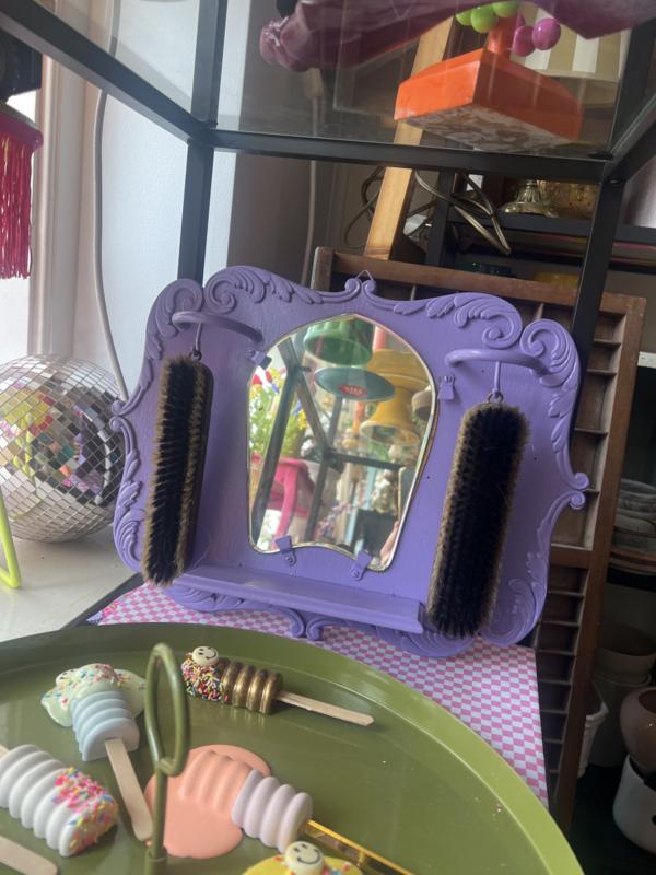 Gepimpt sleutel/ poets setje met spiegel voor aan de muur